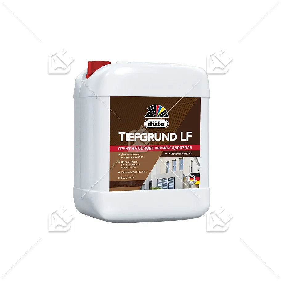 Грунт Dufa Tiefgrund D14 предназначен для внутренних и наружных работ, обладает превосходной проникающей способностью. Очень хорошо укрепляет пропитанные основания. Усиливает прилегающую способность, пропускает воздушные пары, устойчив к воздействию щелочей. Грунтовка высыхает быстро и почти без запаха. Акрилгидрозоль, разбавляется водой, с высоким капилярным действием, для внутренних и наружных работ.