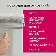 кирпича, природного камня, древесностружечных и древесноволокнистых плит, гипсокартона и т.п. – перед нанесением выравнивающих штукатурных и напольных смесей, плиточных клеев, полимерных гидроизоляционных мастик, креплением систем теплоизоляции фасадов (СФТК) и т.д.