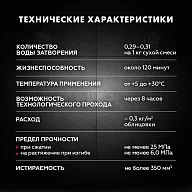 - Количество воды затворения: 0,6–0,64 л на 2 кг сухой смеси