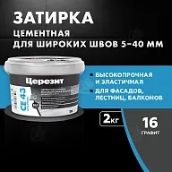 Затирка для широких швов от 5 до 40 мм Церезит CE 43 Super Strong графит 2 кг