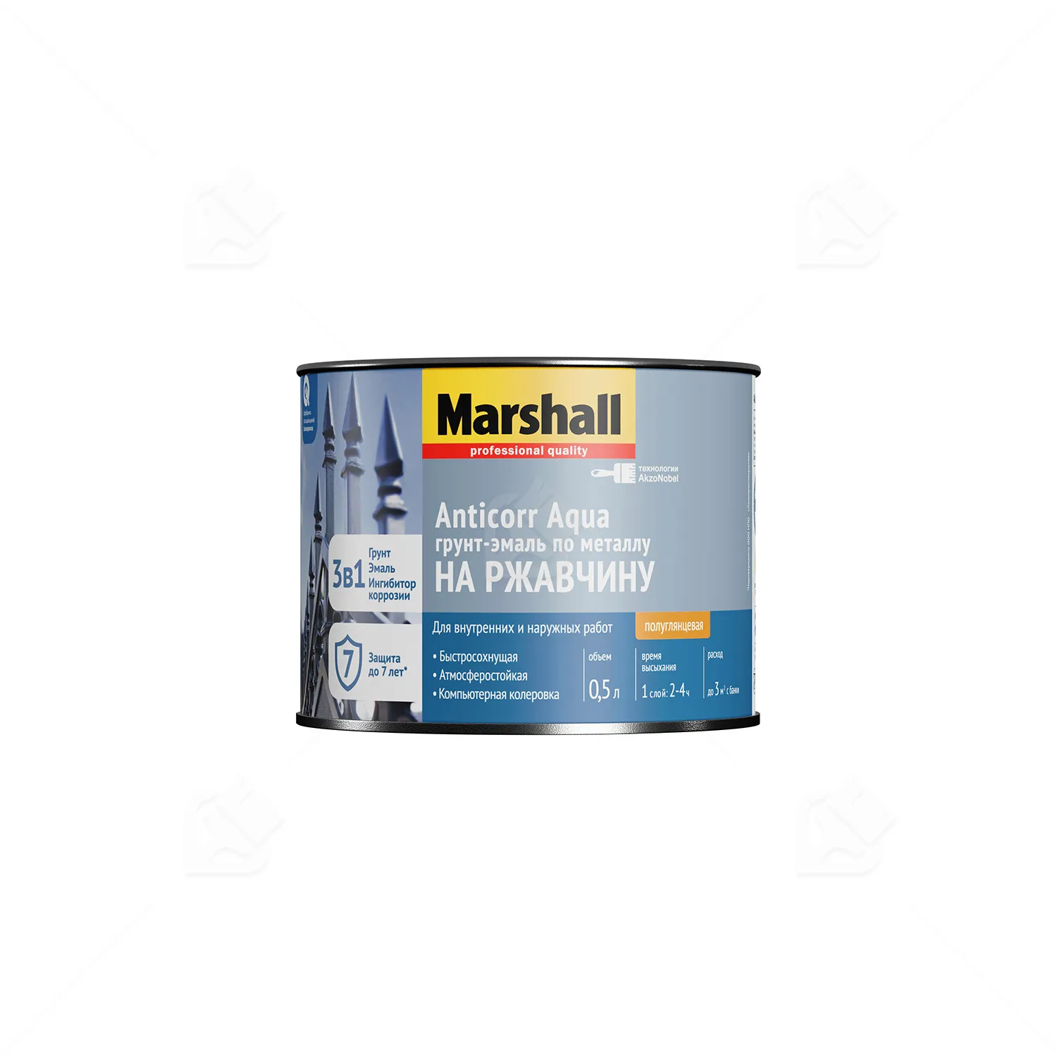 Грунт-эмаль по металлу ANTICORR AQUA на ржавчину база BC (0,5л) МаршаллБаза