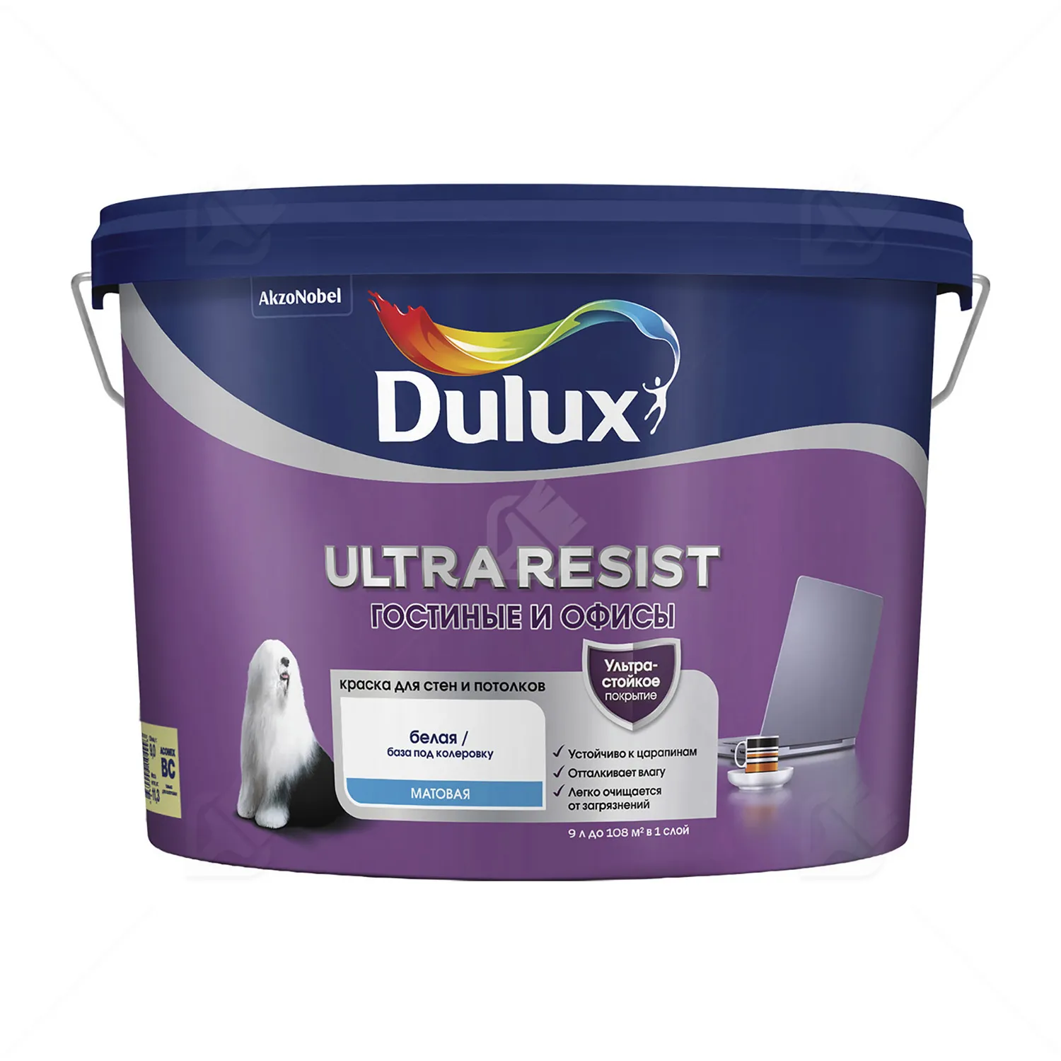 Краска для стен и потолков водно-дисперсионная Dulux Diamond Max Protect глубокоматовая база BC 9 л.База