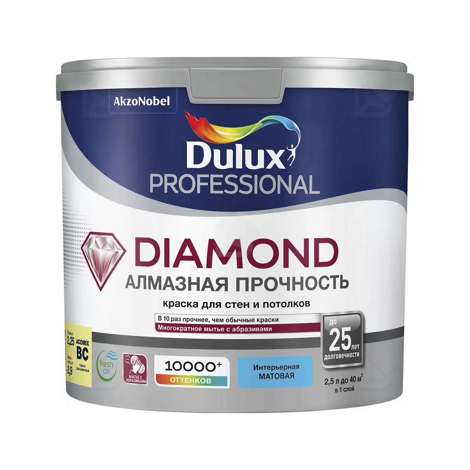 Краска для стен и потолков водно-дисперсионная Dulux Diamond Matt матовая база BC 2,25 л.База
