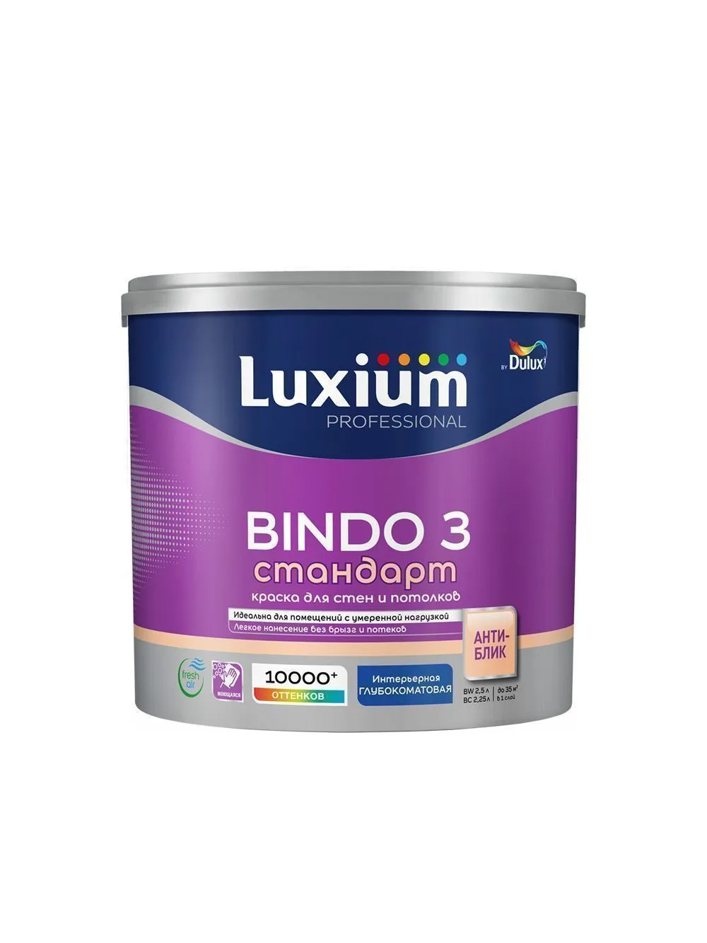 Краска для стен и потолков латексная Dulux Professional Bindo 3 глубокоматовая база BC 2,25 л.База