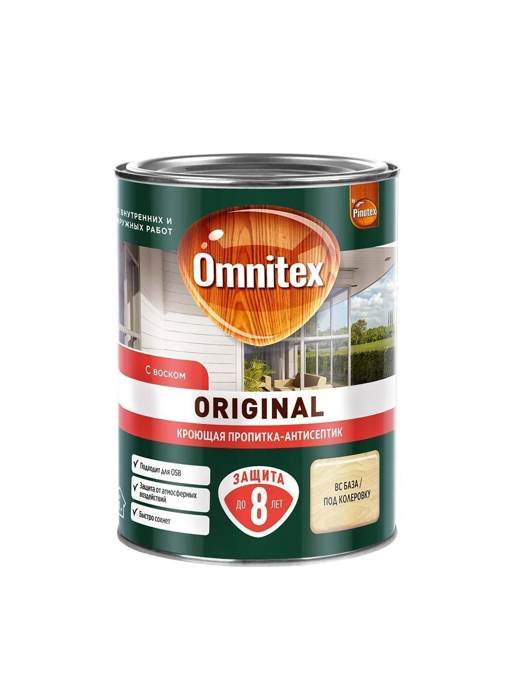 Пропитка защитная для дерева Omnitex Universal 2 в 1 база под колеровку 0,9 лБаза