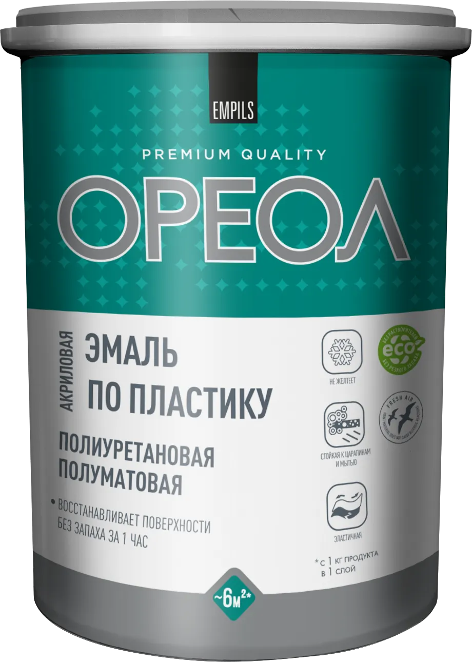 Эмаль по пластику полиуретановая акриловая Ореол полуматовая белая 1,1 кгБаза