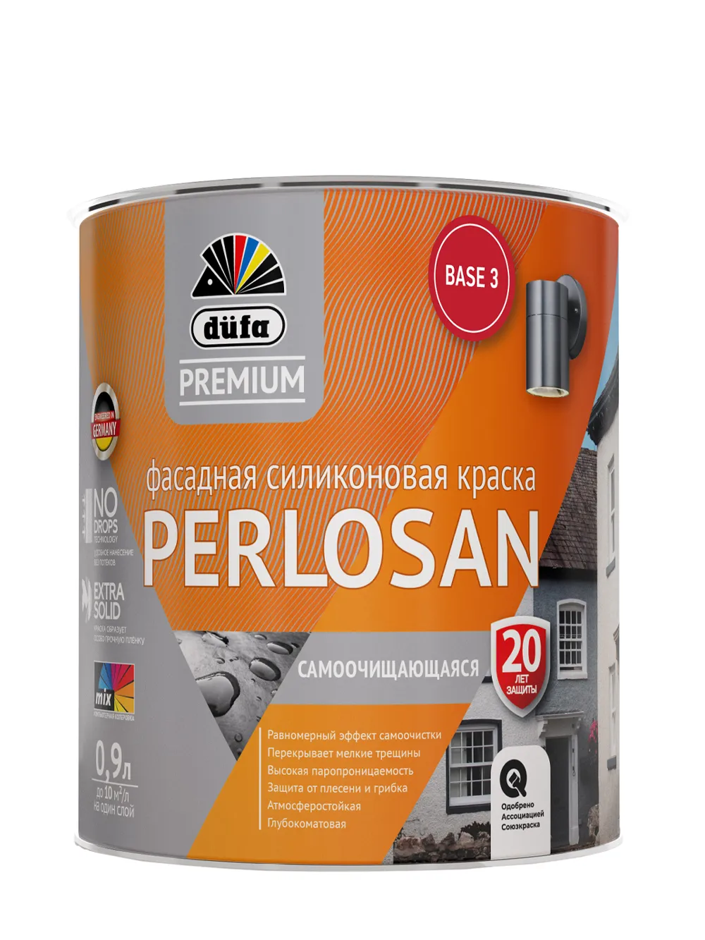 Краска фасадная силиконовая самоочищающаяся Dufa Premium Perlosan база 3 0,9 лБаза
