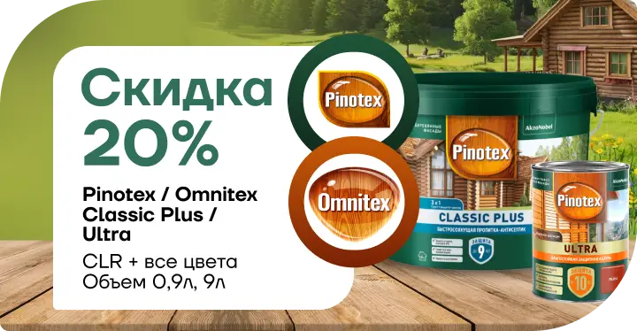 Скидка 20 % на пропитку Pinotex/Omnitex Ultra!